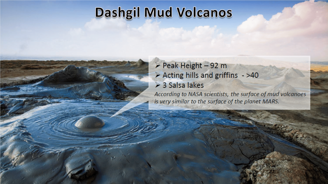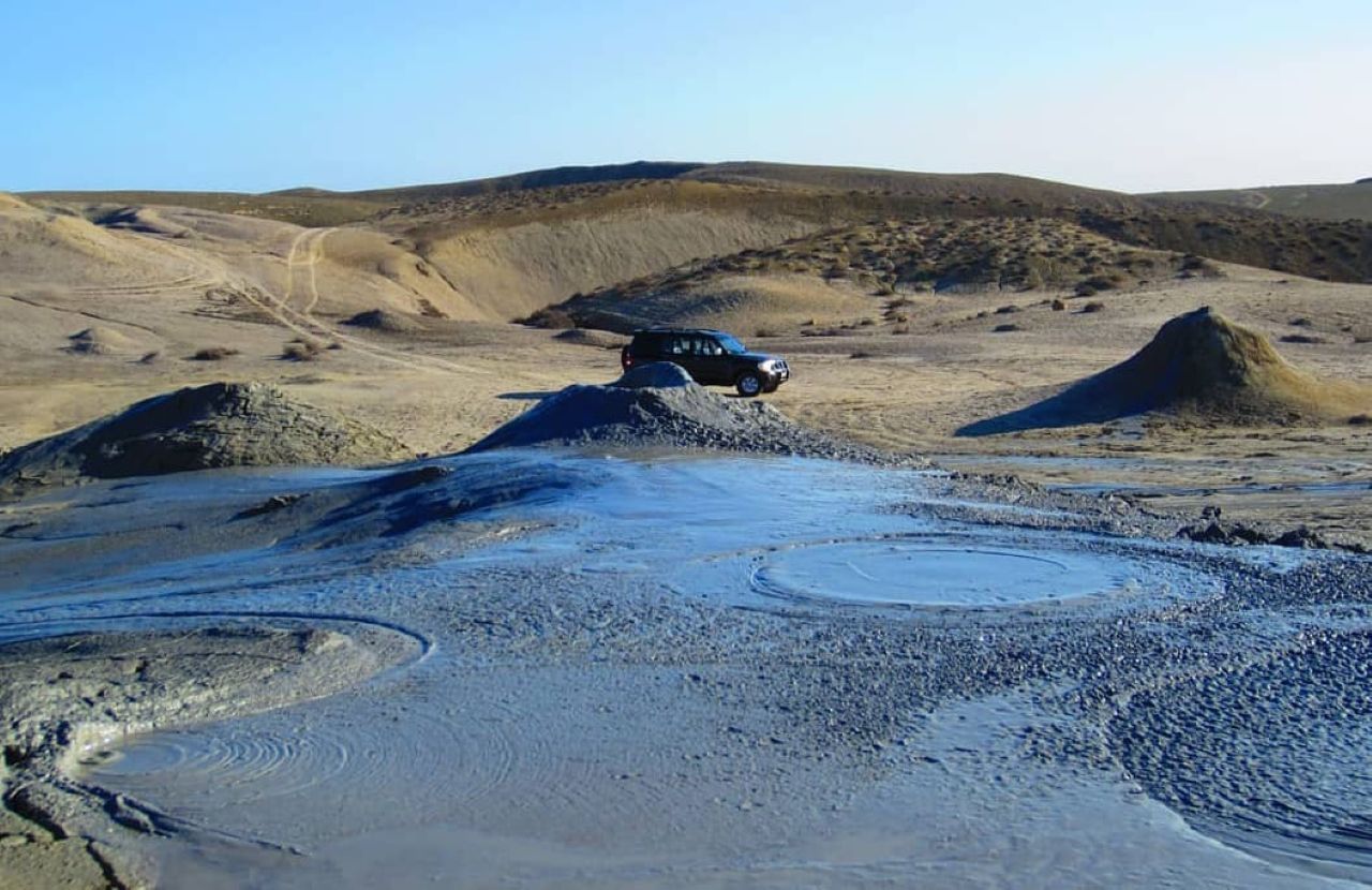 🌋 Next, prepare for an extraordinary natural phenomenon: the mud volcanoes. Azerbaijan is home to the world’s largest number of mud volcanoes, and Gobustan is one of the best places to witness these bubbling, otherworldly formations up close. Driving off-road to the volcanoes is an adventure in itself, with steep paths and dramatic vistas adding to the thrill.